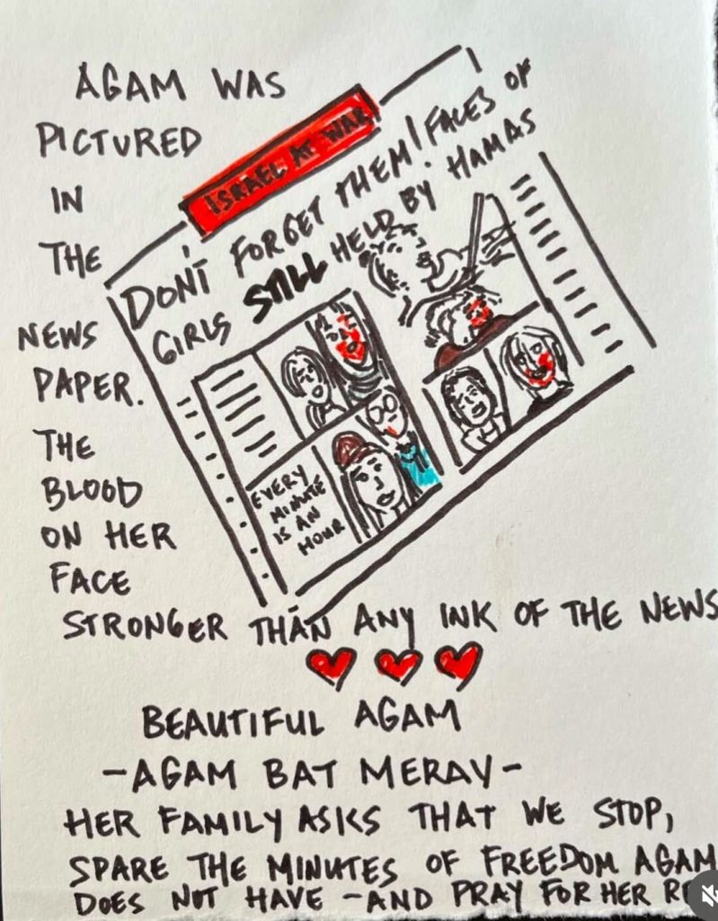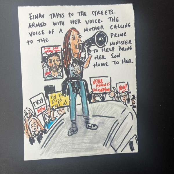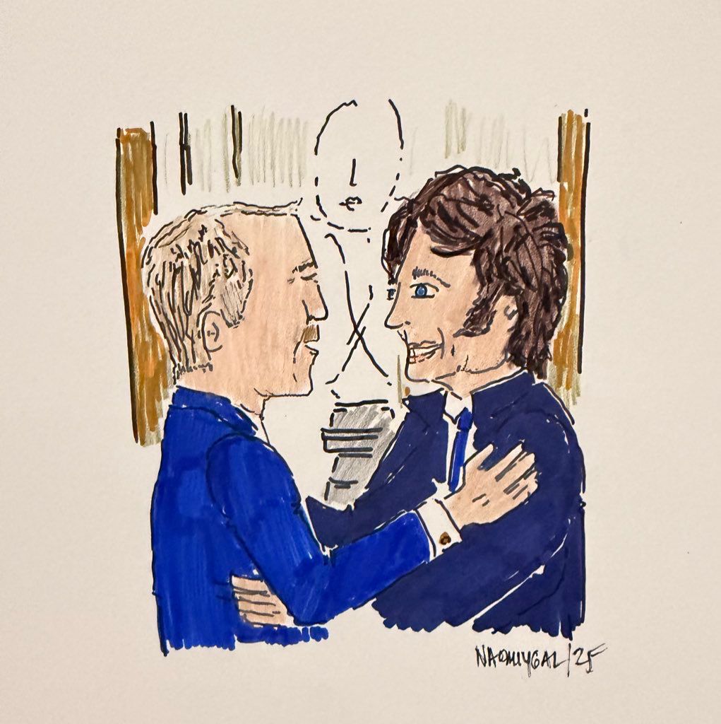 Naomi Gal is a Toronto based artist whose work has recently flourished in Argentina, where her drawings of President Javier Milei have gained significant recognition. Known for her emotional, hand drawn illustrations, Naomi approaches each portrait as a form of storytelling, capturing not only what someone looks like, but what they carry, what they dream, and what they stand for.