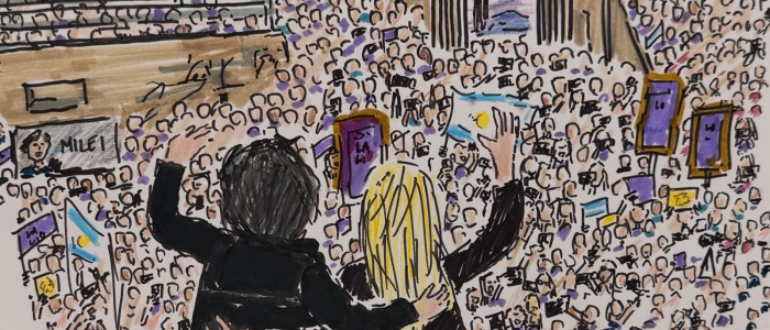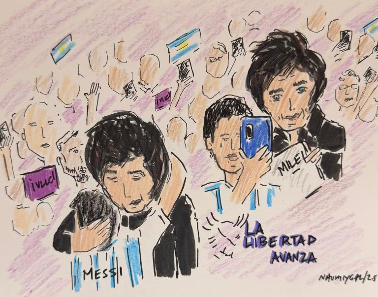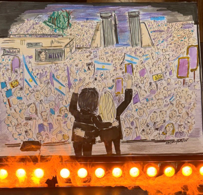 Her work in Argentina began with a single portrait of President Milei, created in her signature expressive style. The piece struck a chord online and quickly led to a growing collection of drawings depicting key moments, symbols, and expressions tied to Argentina’s new era. Naomi’s art, rooted in warmth and humanity, resonated with audiences across Buenos Aires and beyond, resulting in invitations, exhibitions, and conversations about culture, identity, and renewal.