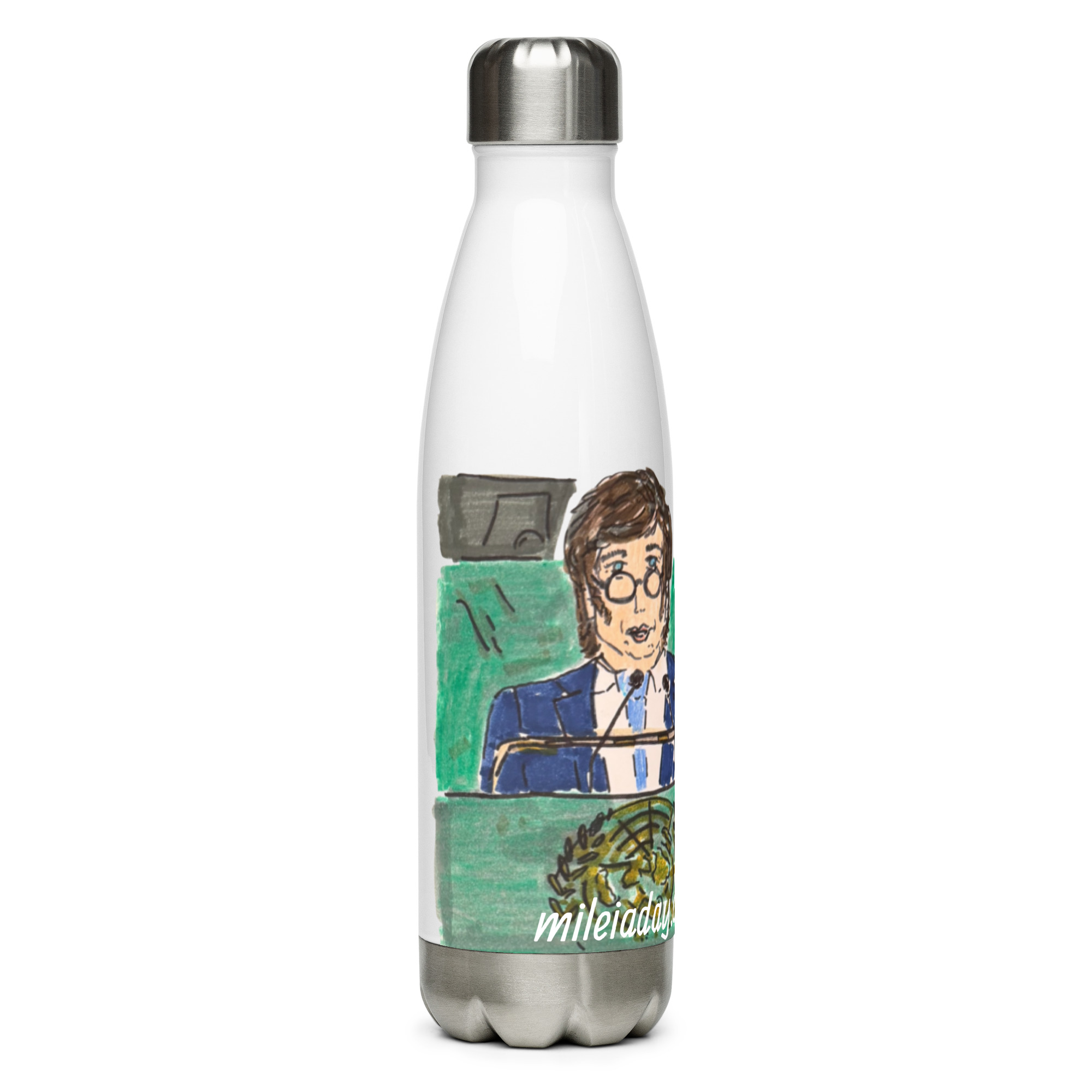 Say hello to our Stainless Steel Water Bottle made from high-grade stainless steel. Its double-wall construction makes it perfect for storing both hot and cold liquids. What’s better than taking that first sip of a coffee in the morning, or having a swig of icy-cold water after a workout? Enjoying your drinks from an easy-to-carry, beautifully designed, reusable bottle!. High-grade stainless steel. 17 oz (500 ml). Dimensions: 10. 5″ × 2. 85″ (27 × 7 cm). Vacuum flask. Double-wall construction. Bowling pin shape. Glossy finish. Odorless and leak-proof cap. Insulated and suitable for hot and cold liquids (keeps the liquid hot or cold for 6 h). Hand-wash only. Blank product sourced from China. Disclaimer: Keeping water in the bottle for over 24 hours is unhygienic and can result in an unpleasant smell. This product is made on demand. No minimums.